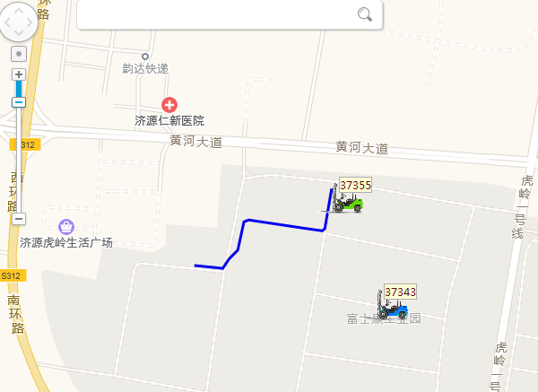綠色代表車輛行駛,藍(lán)色代表車輛原地停車超過半個(gè)小時(shí)。